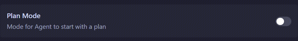 - Plan Mode 支持: 根据自然语言描述进行需求分析、系统设计、任务拆解和规划,生成一个可执行的结构化需求文档 PRD。支持手动开启/关闭。