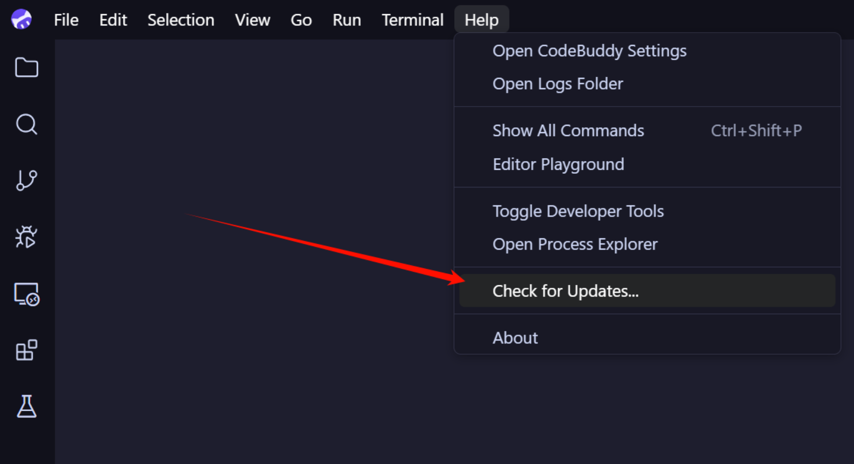 - 点击左上方的 Help > Check forUpdates,进行检查更新。