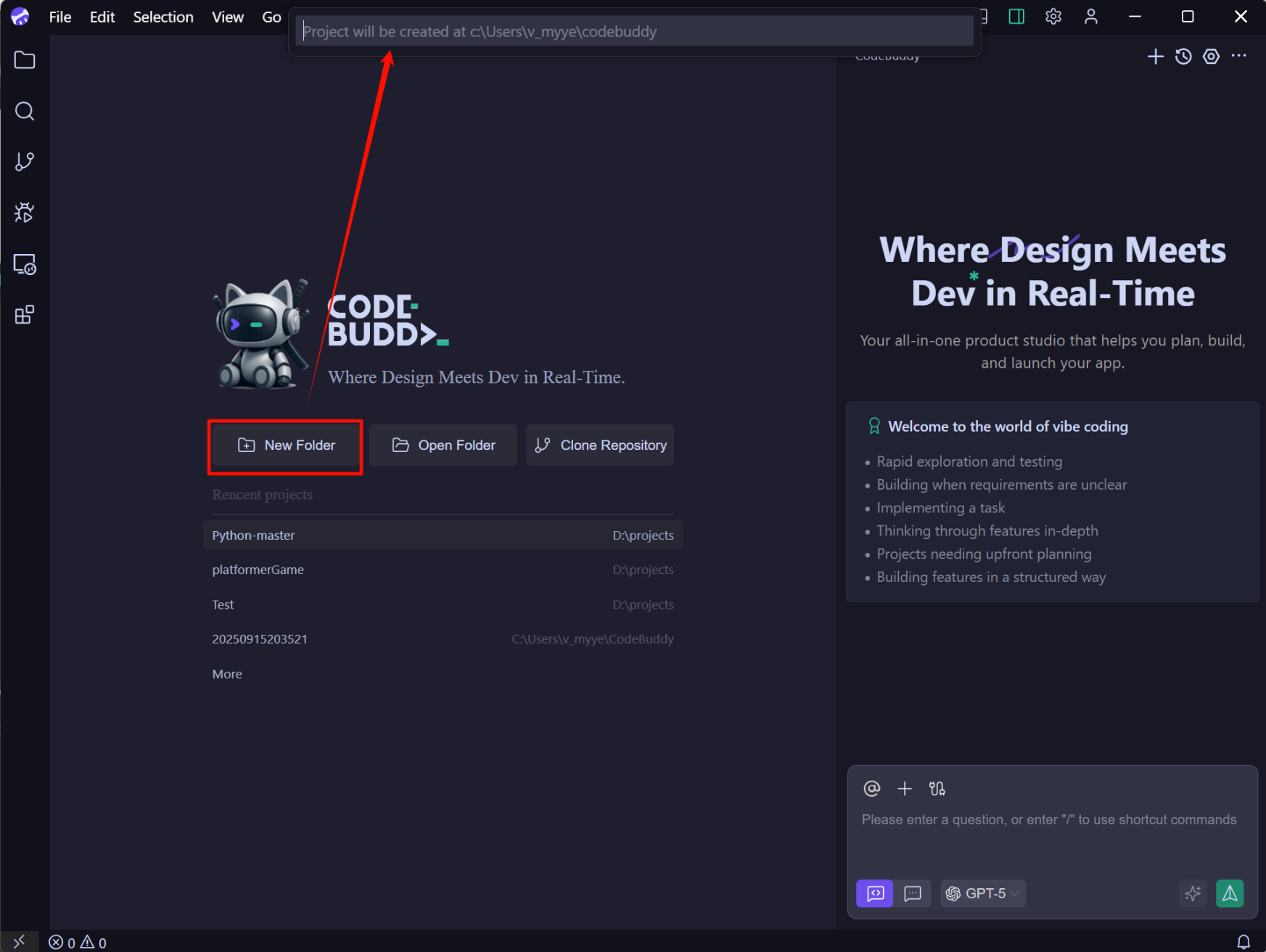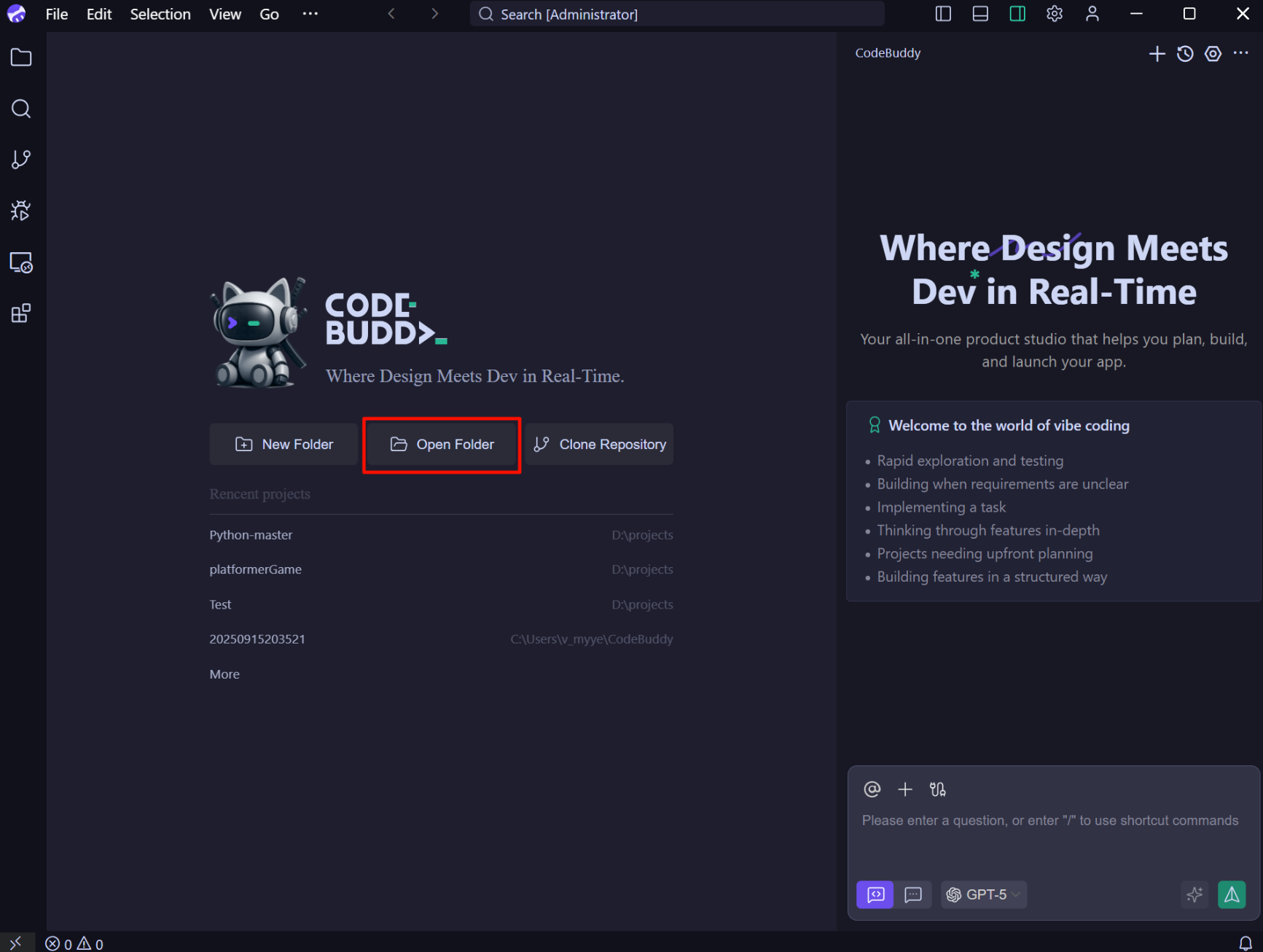 - 打开 CodeBuddy IDE。