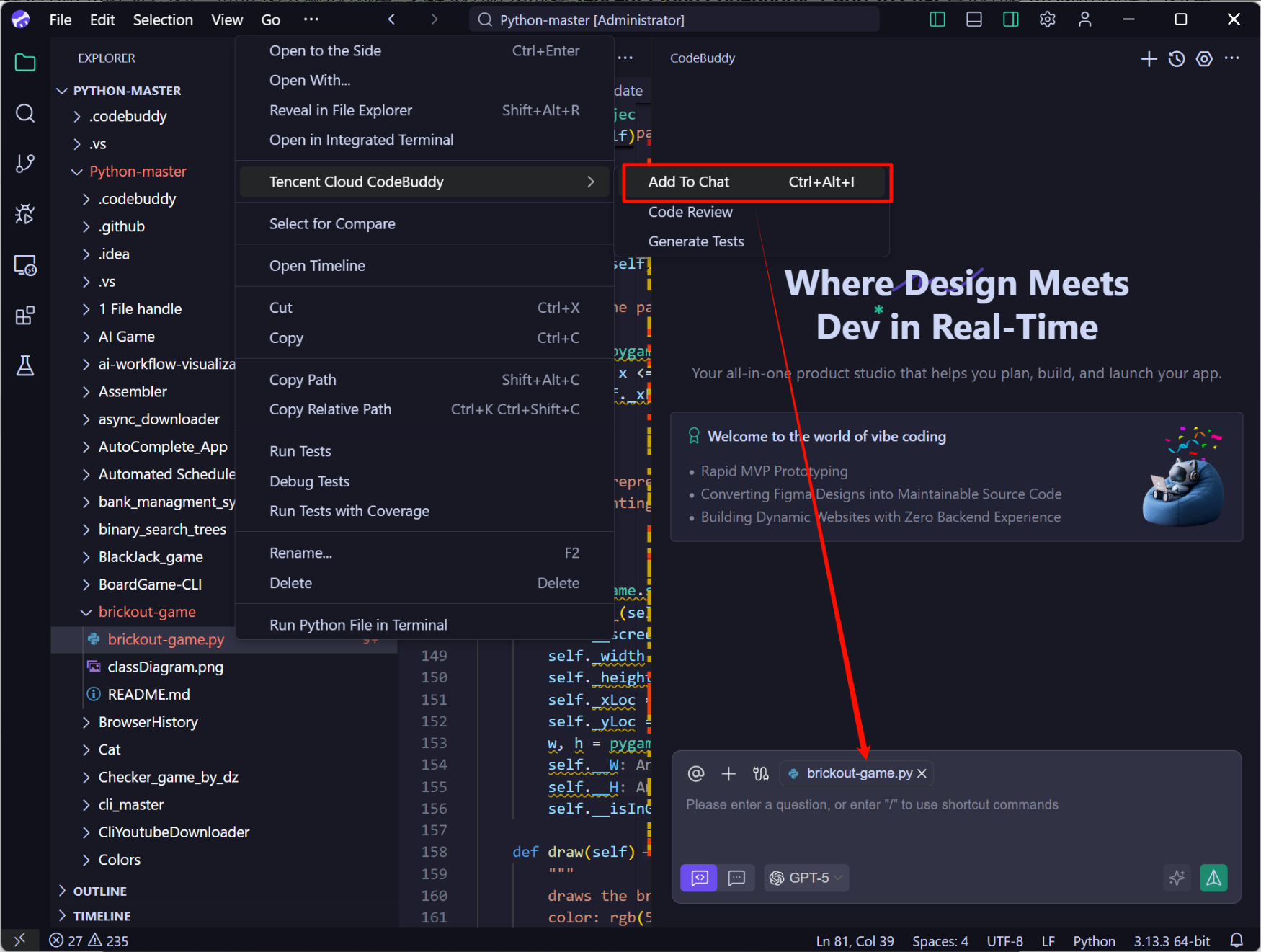如何使用 CodeBuddy IDE 的 Agent Mode,即Craft Agent。如果您希望可以直接进行多文件改写,您就可以使用 Craft Agent。它可以读取并分析整个项目代码结构,根据您的任务需求进行多文件改写。您也可以通过一句话描述任务需求,它可以帮您从零开始构建项目,进行多文件改写,快速将您的想法进行落地。