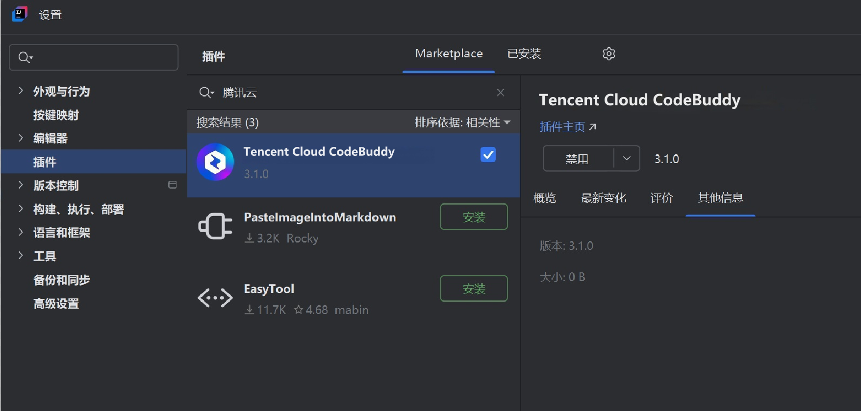 注意:其他更多 JetBrains 系列 IDE 版本要求请参见 JetBrains 插件市场。除市场版本外,JetBrains 另外提供低版本兼容插件,最低可兼容至2020.3,您可点击 此处 下载。受低版本 JetBrains 能力限制,此插件包无法体验最新的产品功能,建议尽量升级 JetBrains 版本,使用正式版本插件。